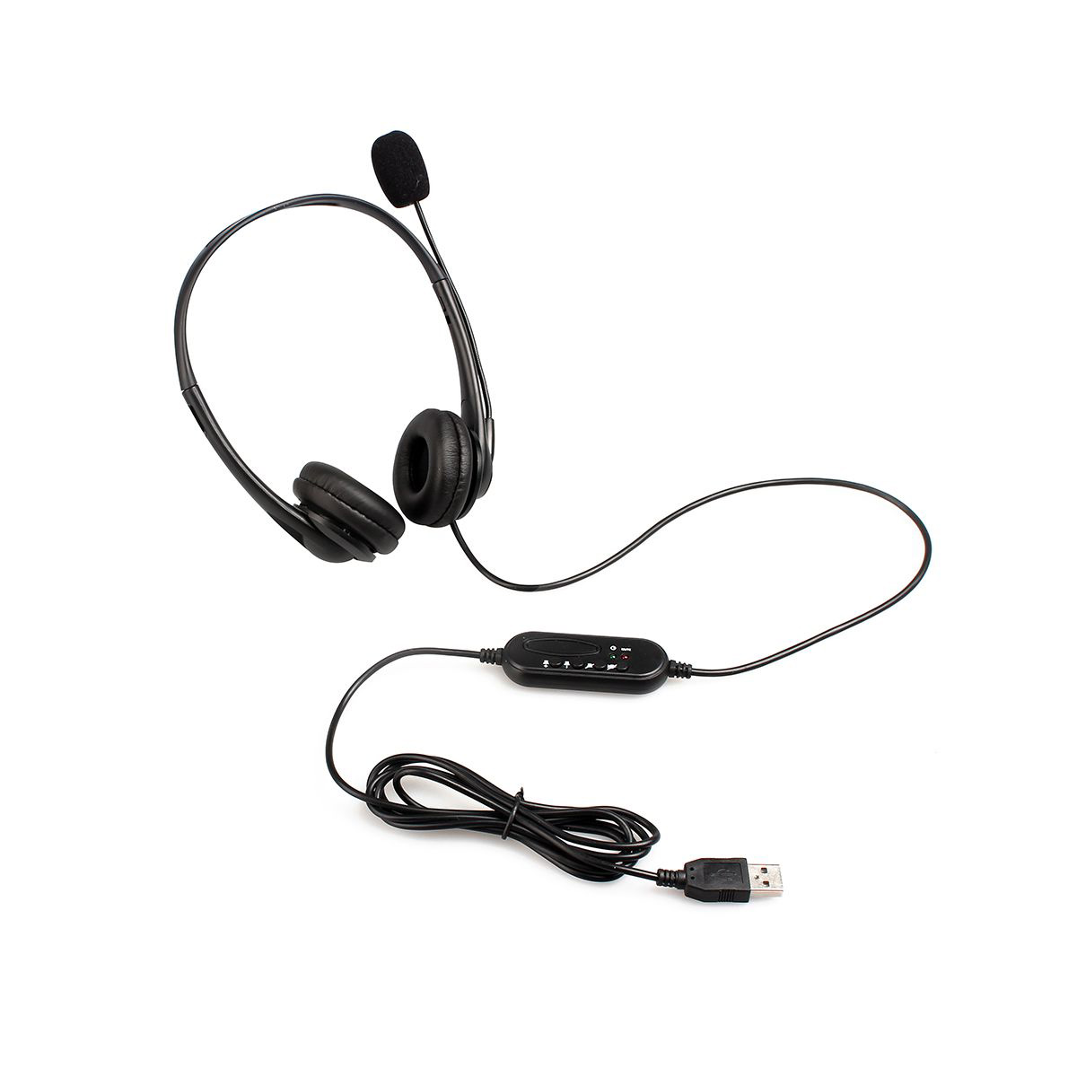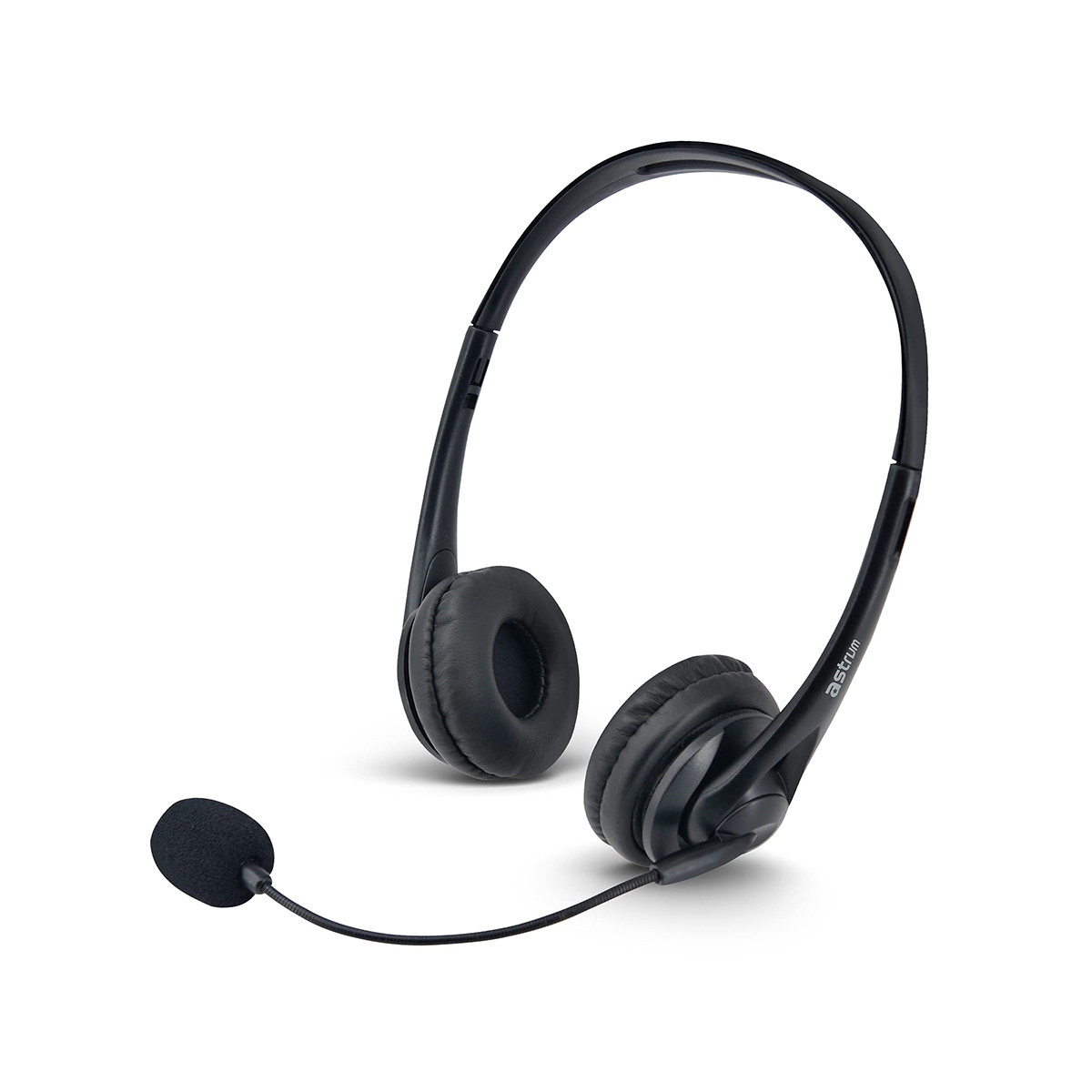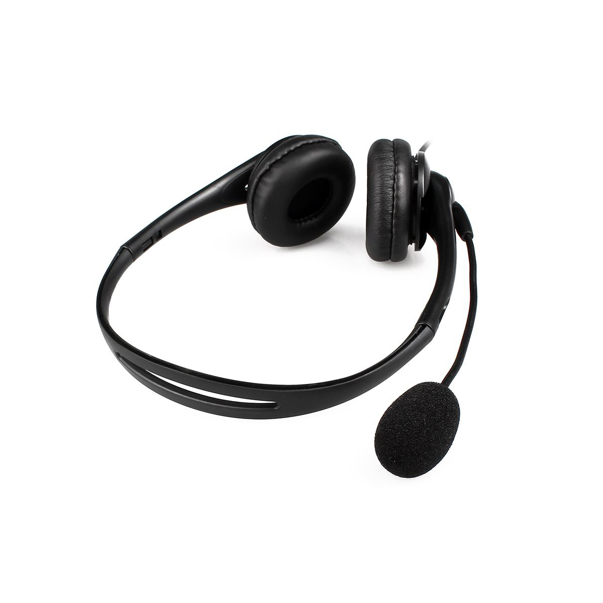 Compact PC / USB headphone with leather padded earcups and adjustable headrest fixed microphone recommended for online communication.
