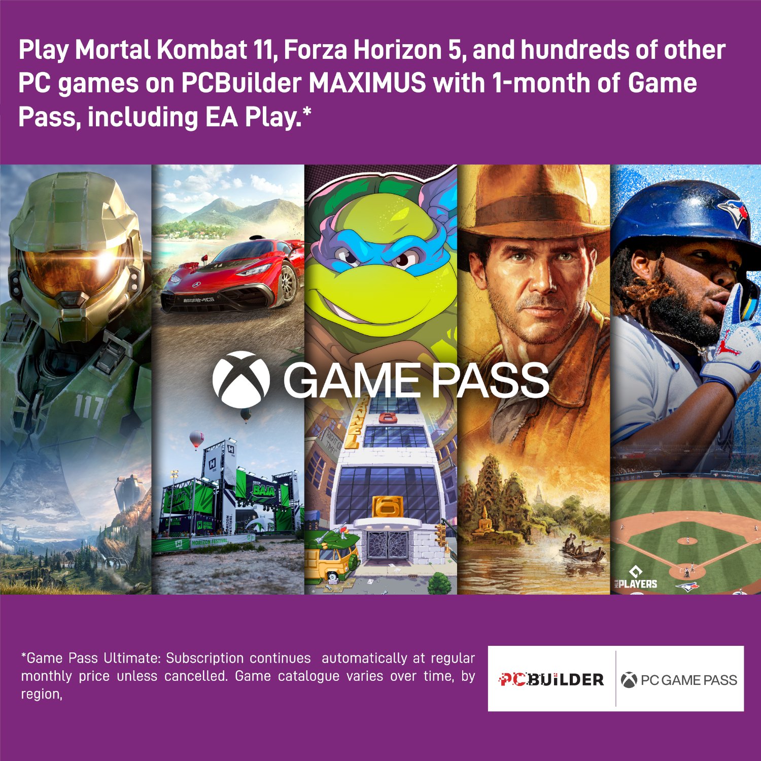 The PCBuilder MAXIMUS Windows 11 Gaming PC also includes one month of PC Game Pass including EA Play. Play over 100 high-quality PC games, in various genres such as Halo Infinite, Forza Horizon 5, and Minecraft on your new gaming rig. With new games added all the time, there’s always something new to play from day one.